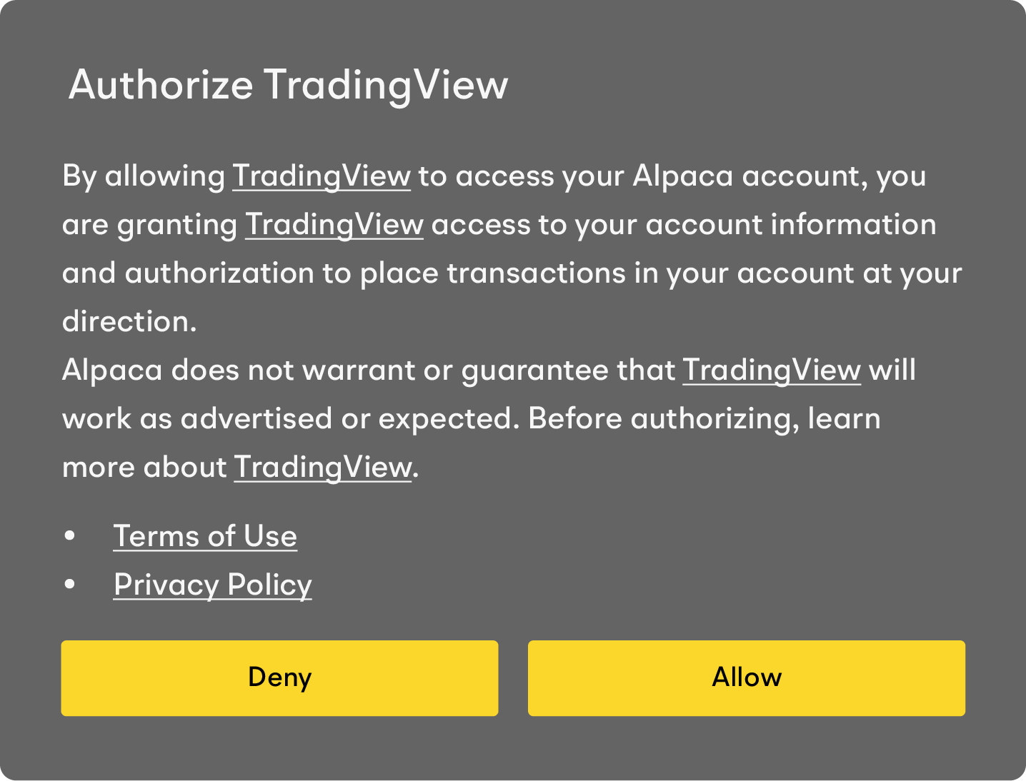 When trading on margin, you assume higher market risk, and potential losses can exceed the collateral value in your account. Alpaca may sell any securities in your account, without prior notice, to satisfy a margin call. Alpaca may also change its “house” maintenance margin requirements at any time without advance written notice. You are not entitled to an extension of time on a margin call. Please review the Firm’s Margin Disclosure Statement before investing.